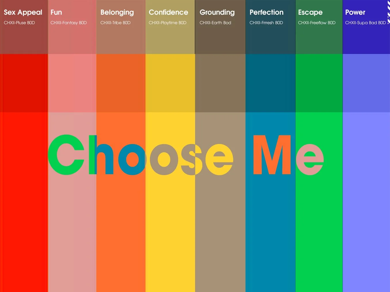 Image: The CHXXII cyber-wear collection colours, promises and product names